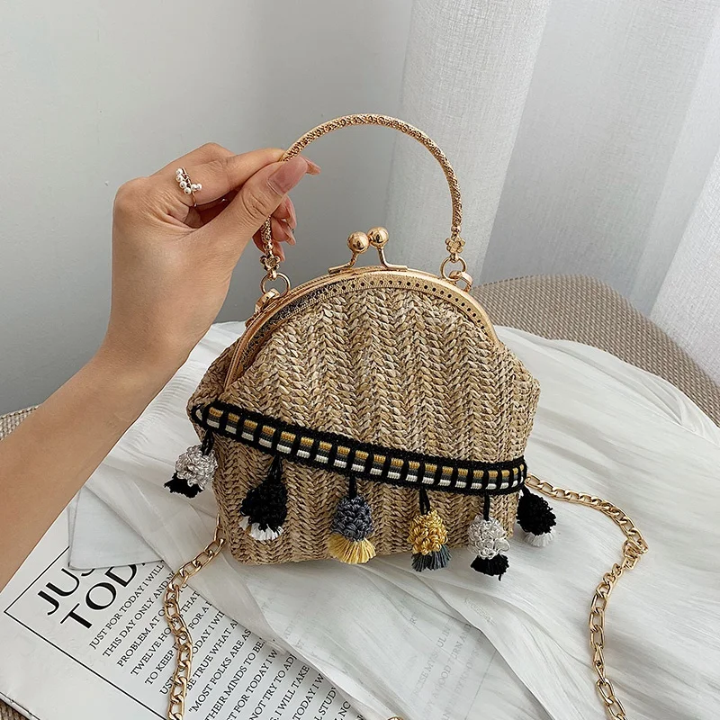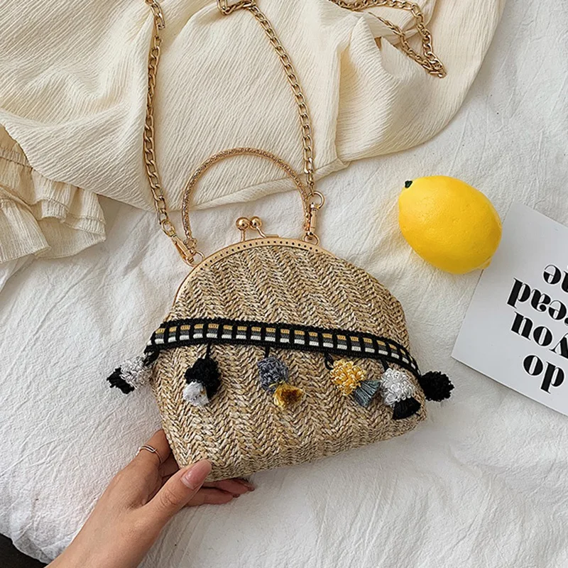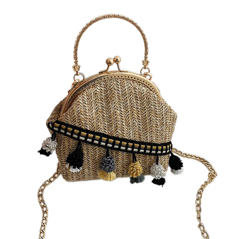 Sen Department Fashion Straw Bag Female Fashion Summer Wild Woven Contrast Color Shoulder Messenger