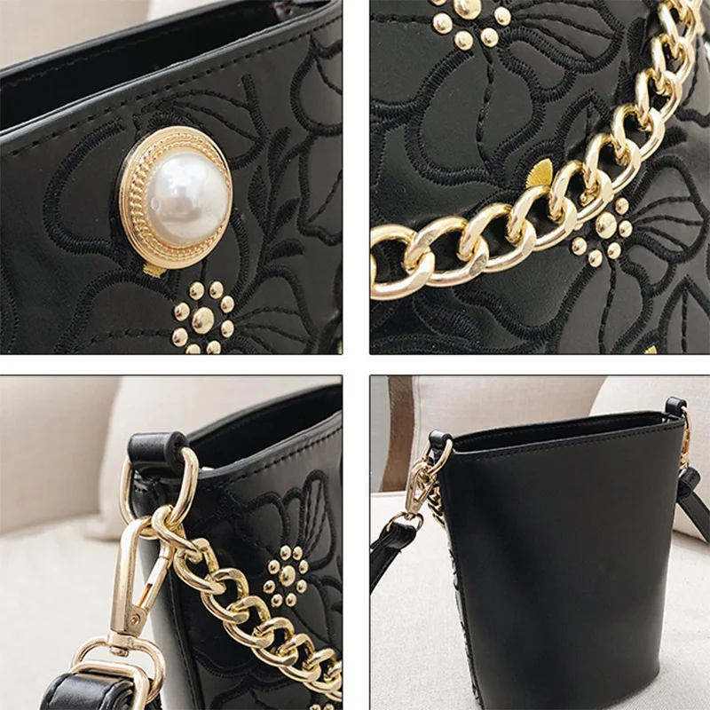 Lightweight Small Crossbody Bag Flower Embroidery Bucket Bag Cell Phone Purse Zipper Wallet For Wom