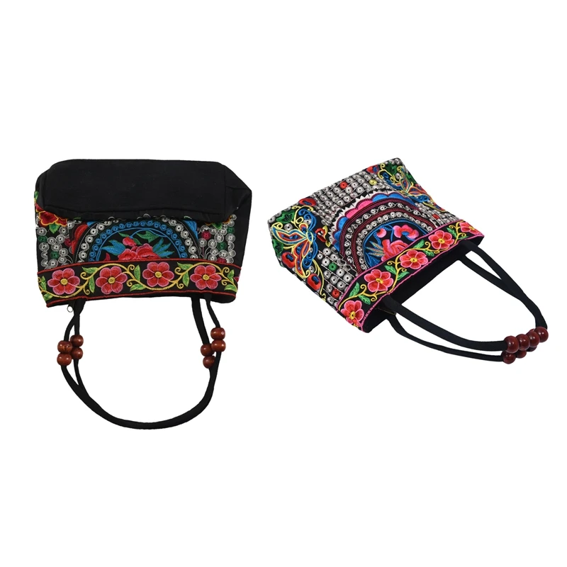 2 Pcs Chinese Style Women Handbag Embroidery Ethnic Summer Fashion Handmade Flowers Ladies Tote Sho
