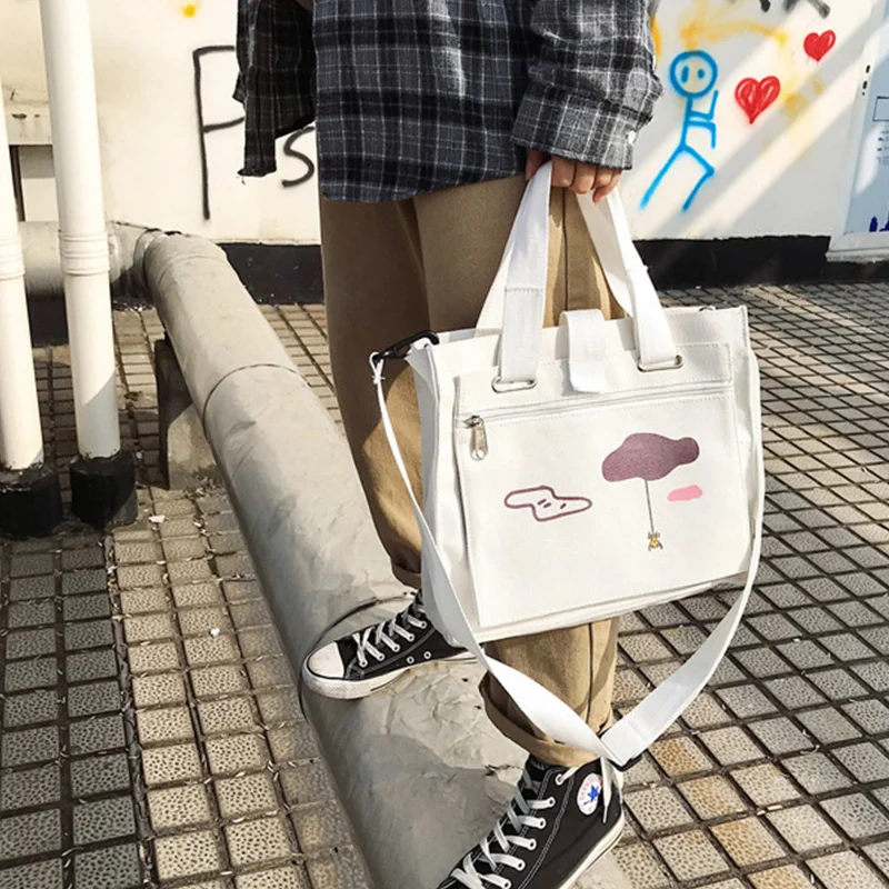 Korean Casual Girl Canvas Messenger Bag Large-Capacity Shopping Shoulder Bag Tote Bag