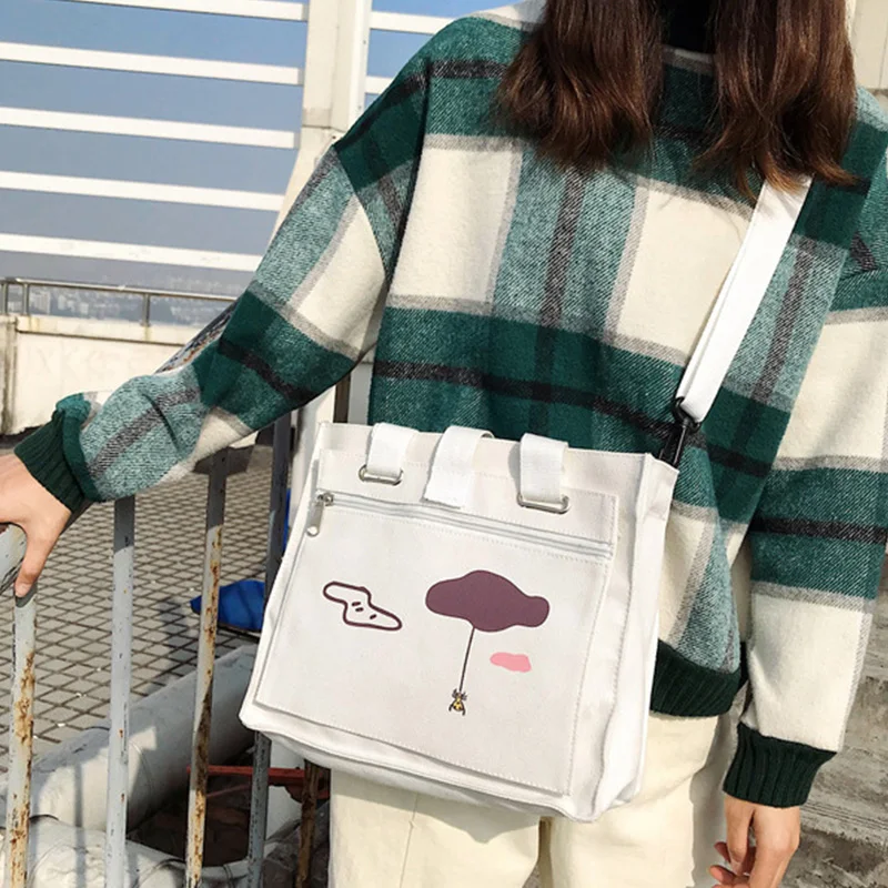 BEST QUALITY Korean Casual Girl Canvas Messenger Bag Large-Capacity Shopping Shoulder Bag Tote Bag