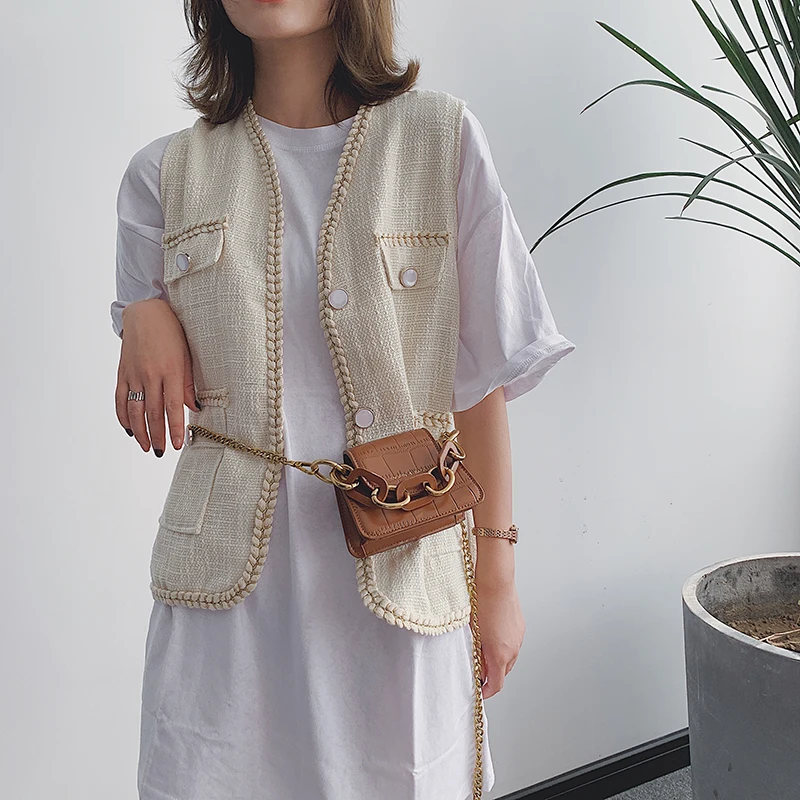 Stone Pattern PU Leather Crossbody Bags For Women Thick Chain Design Shoulder Messenger Bag Lady Mi