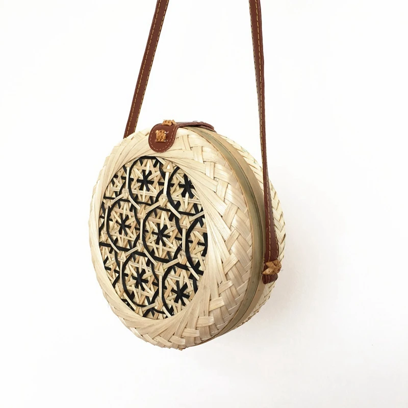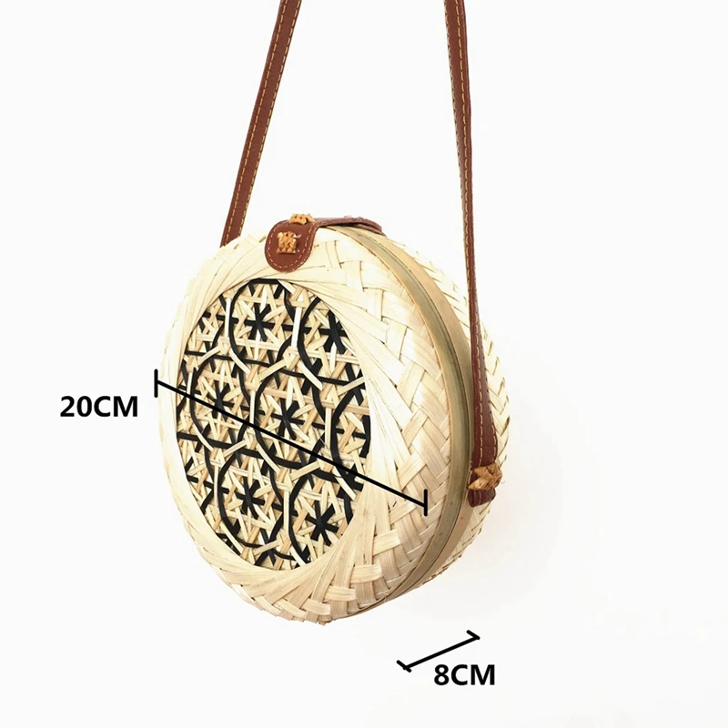 New Round Straw Beach Bag Women Bamboo Handbag Circle Rattan Bag Colorful Flower Pattern Design Fem
